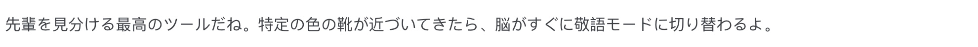 “这真是辨认学长学姐的绝佳利器啊,看到特定颜色的鞋子走过来,大脑立刻启动敬语模式。”