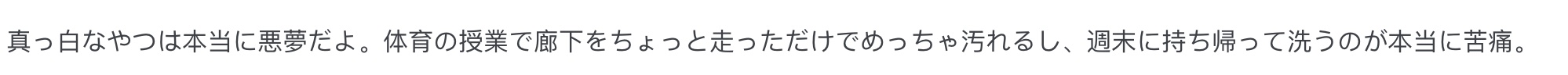“全白的那种真的是噩梦,体育课稍微到走廊跑一下就脏得没眼看了,周末带回家洗起来好痛苦啊。”