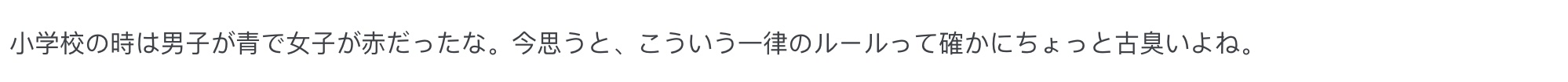 “我小学的时候就是男生蓝色女生红色,现在想想这种一刀切的规定确实有点太古老了。”