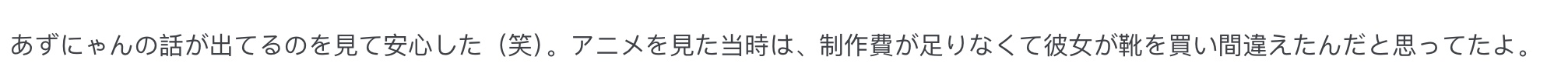 “看到有人提梓喵我就放心了,当年看动画时我还以为经费不足她买错鞋子了呢哈哈哈。”