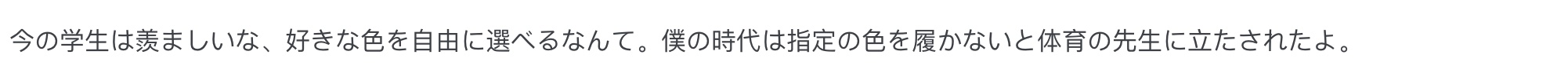 不过随着时代进步,这种充满年代感的硬性规定已经越来越少见了。如今,越来越多的日本学校开始灵活运作,有的只要求全校整齐划一地穿纯白色款式,有的则更加开放,允许学生自由挑选自己喜欢的颜色。