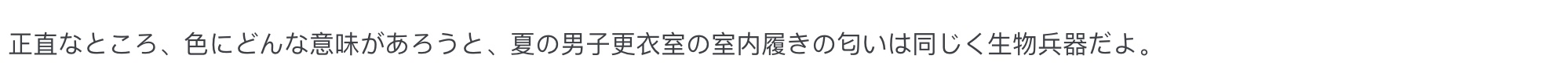 “说真的,不管什么颜色有什么意义,夏天男生更衣室里的室内鞋味道都是一样的生化武器。”