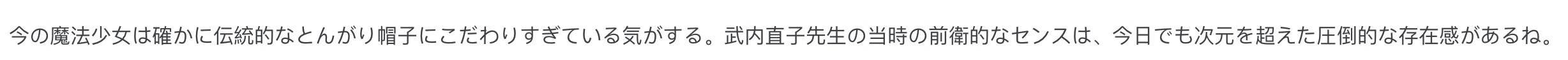 “现在的魔法少女确实有点太拘泥于传统的尖帽子了,武内直子老师当年的前卫审美放到今天依然是降维打击。”