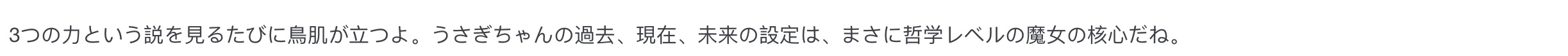 “每次看到三的力量这个说法就觉得头皮发麻,月野兔的过去现在未来设定,简直是哲学级别的魔女内核。”