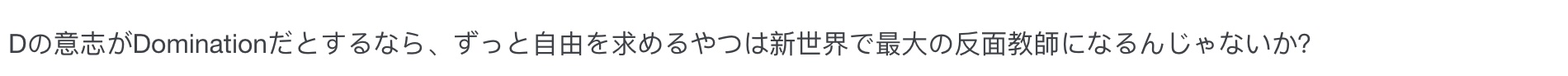 “D的意志如果是 Domination ,那一路向往自由的人不就成了新世界最大的反面教材吗?”