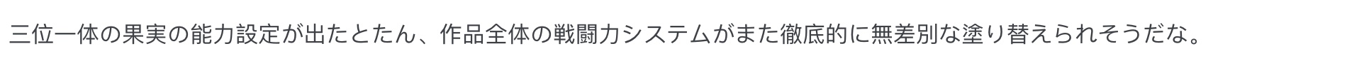 “三位一体的果实能力设定一出,感觉整部作品的战力系统又要彻底进行无差别大洗牌了。”